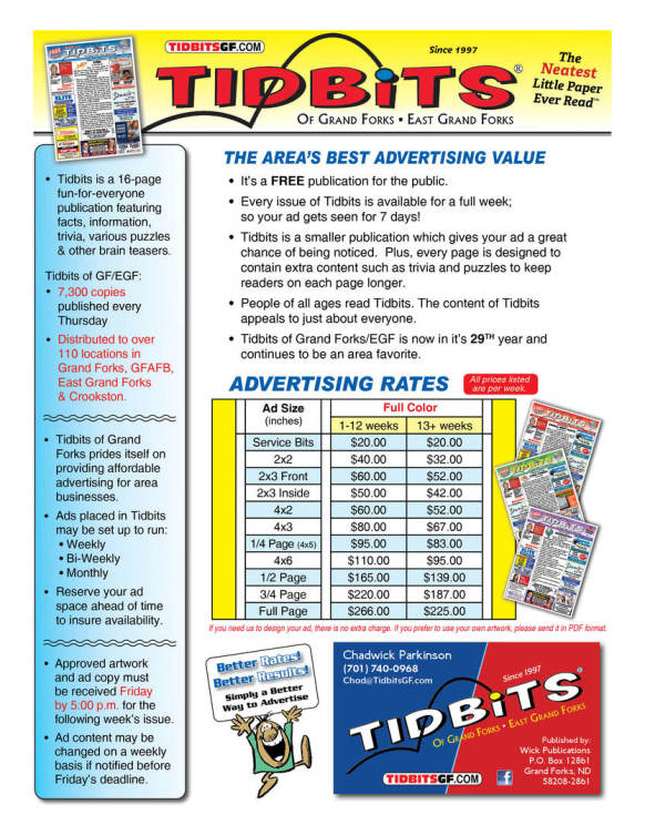 Affordable and Effective Advertising makes Tidbits the area's Best Advertising Value!